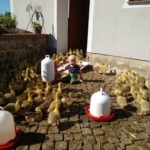 Unsere Gänse werden als Eintags-Gössel aus einem Bio-Aufzuchtbetrieb erworben und liebevoll von uns aufgezogen.